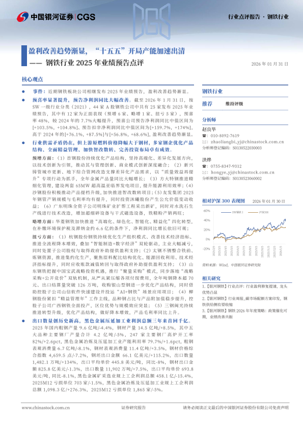 【银河证券】【202601】钢铁行业2025年业绩预告点评:盈利改善趋势渐显,“十五五”开局产能加速出清-3页