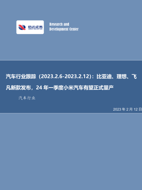 【信达证券】【20230212】汽车行业跟踪(2023.2.6-2023.2.12):比亚迪、理想、飞凡新款发布,24年一季度小米汽车有望正式量产-21页