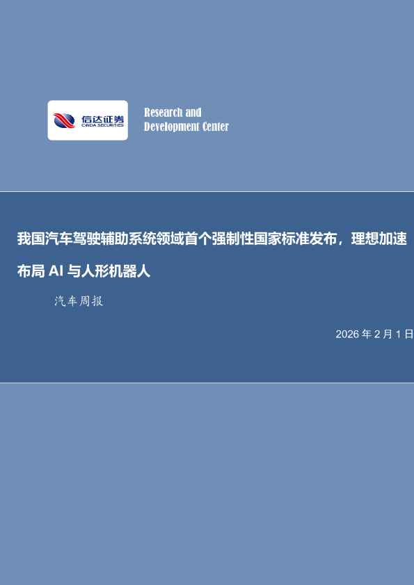 【信达证券】【202602】我国汽车驾驶辅助系统领域首个强制性国家标准发布,理想加速布局 AI与人形机器人-12页