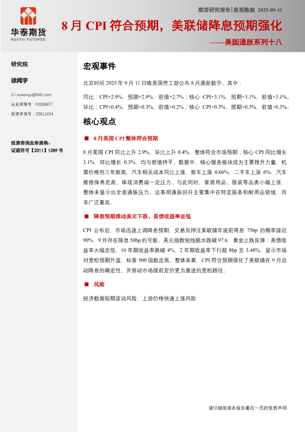 【华泰期货】【202509】8月CPI符合预期,美联储降息预期强化-6页