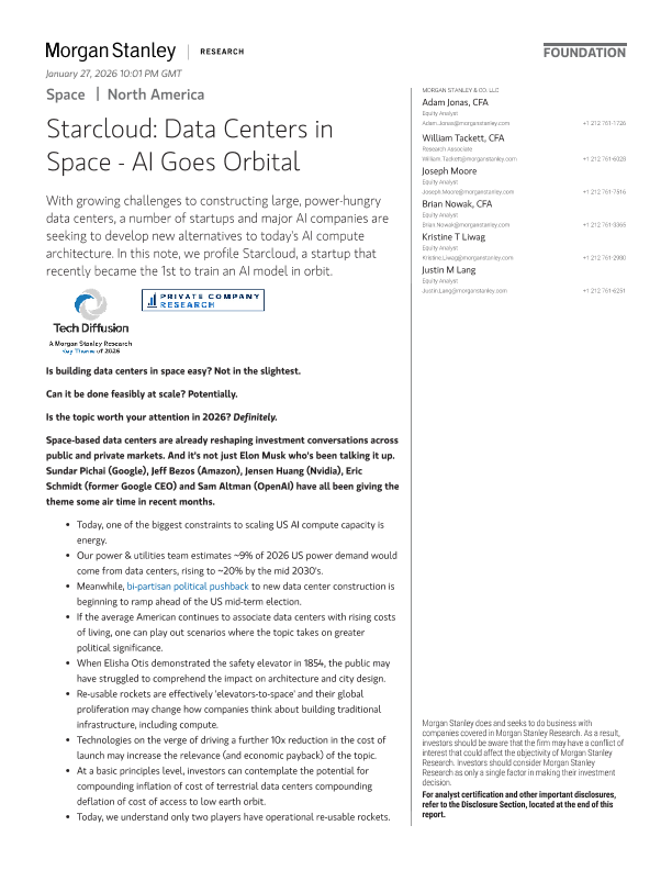 【Morgan Stanley】【2025】Starcloud Data Centers in Space - Al Goes Orbital-25页