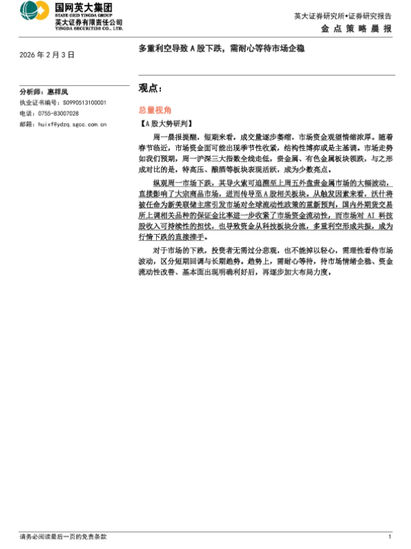 【英大证券】【202402】多重利空导致A股下跌,需耐心等待市场企稳-4页