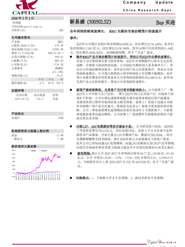 【群益证券 ( 香港 ) 有限公司】【202602】全年利润持续高速增长, 800G光模块市场份额预计快速提升-3页