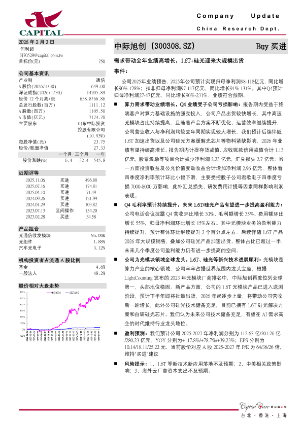 【群益证券】【202602】需求带动全年业绩高增长,1.6T+硅光迎来大规模出货-3页