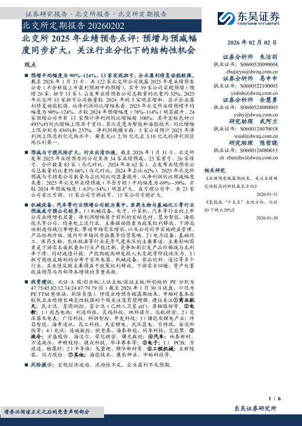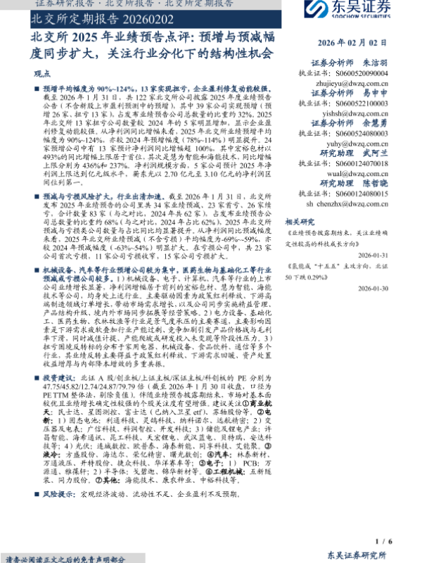 【东吴证券】【202602】北交所2025年业绩预告点评:预增与预减幅度同步扩大,关注行业分化下的结构性机会-6页
