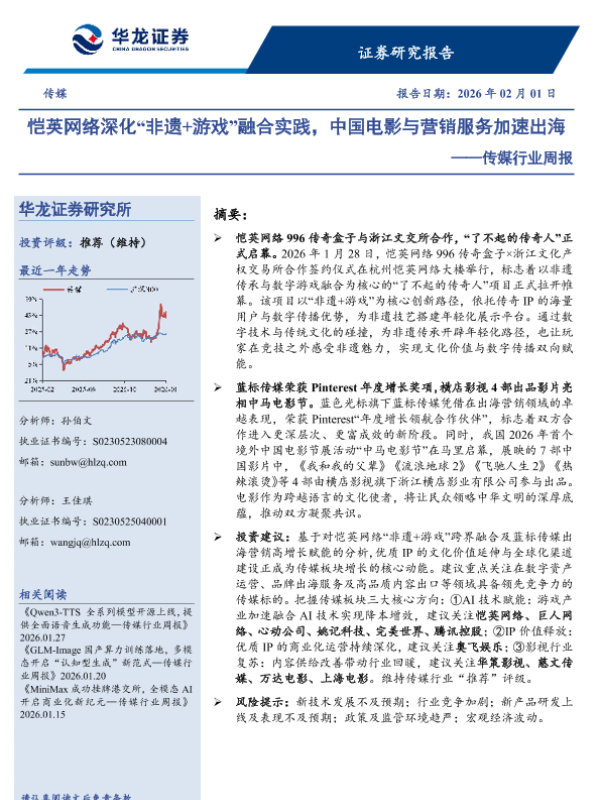【华龙证券】【2026】恺英网络深化“非遗+游戏”融合实践,中国电影与营销服务加速出海——传媒行业周报-10页
