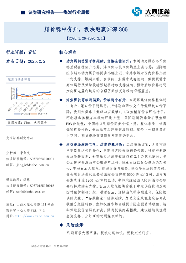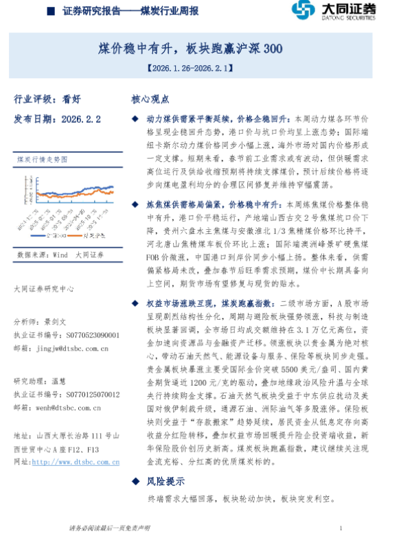 【大同证券】【202602】2026-02-03_大同证券_煤炭行业周报:煤价稳中有升,板块跑赢沪深300-14页