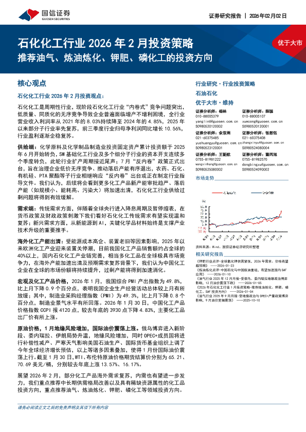 【国信证券】【202602】石化化工行业2026年2月投资策略:推荐油气、炼油炼化、钾肥、磷化工的投资方向-45页