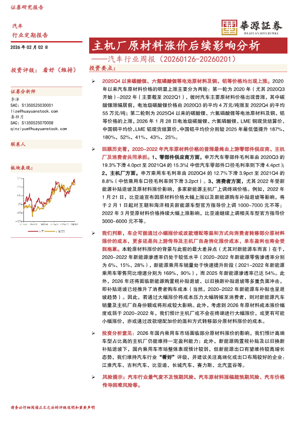 【华源证券】【202602】汽车行业周报(20260126-20260201):主机厂原材料涨价后续影响分析-11页