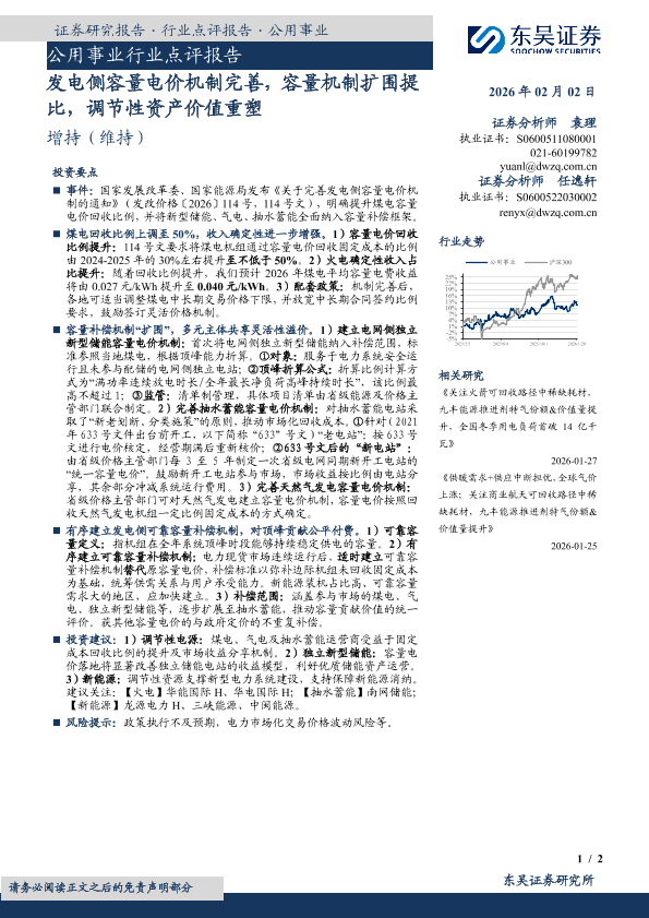 【东吴证券】【202602】发电侧容量电价机制完善,容量机制扩围提比,调节性资产价值重塑-2页