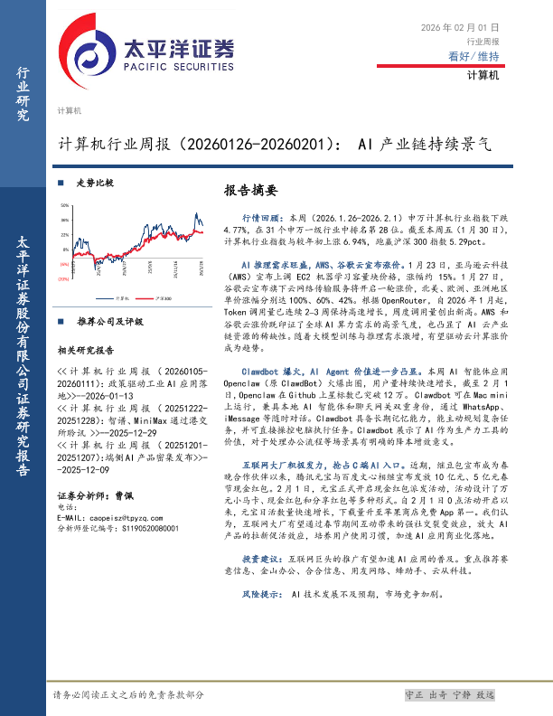 【太平洋证券】【202602】计算机行业周报(20260126-20260201): A I产业链持续景气-10页