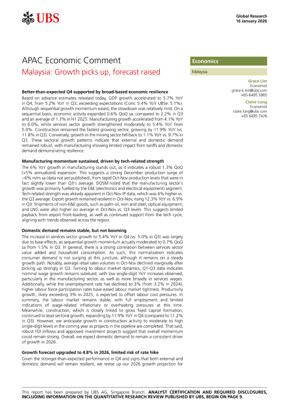【UBS】【202601】Malaysia Growth picks up, forecast revised up-12页