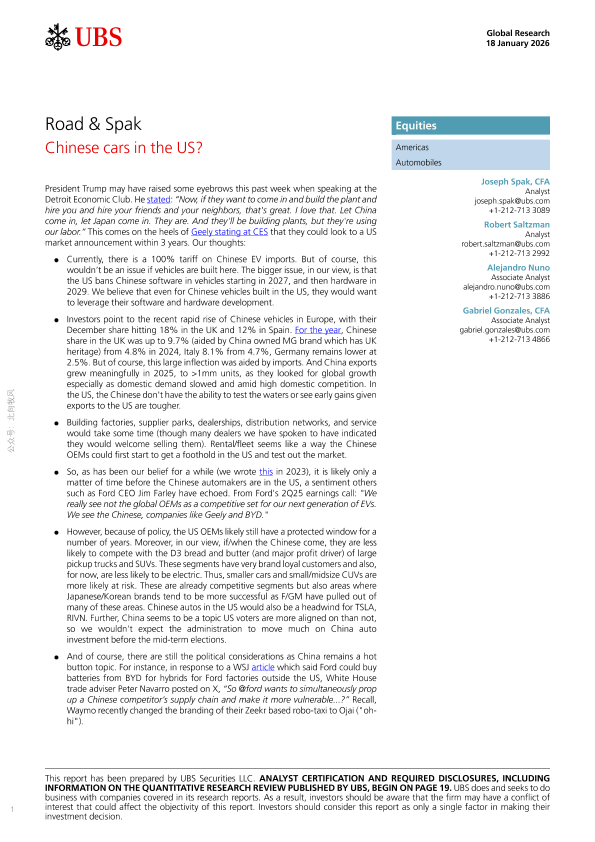 【UBS】【202601】Road & Spak Chinese cars in the US?-27页