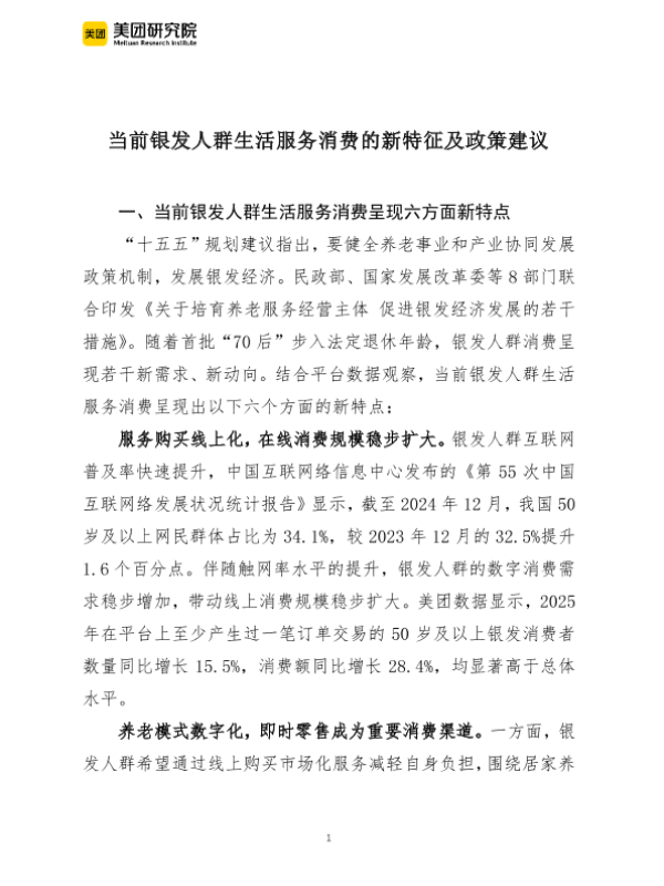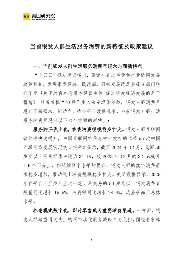 【美团研究院】【2025】当前银发人群生活服务消费的新特征及政策建议-5页