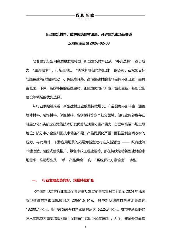 【汉鼎智库咨询】【202602】新型建筑材料:破解传统建材困局,开辟建筑市场新赛道-4页