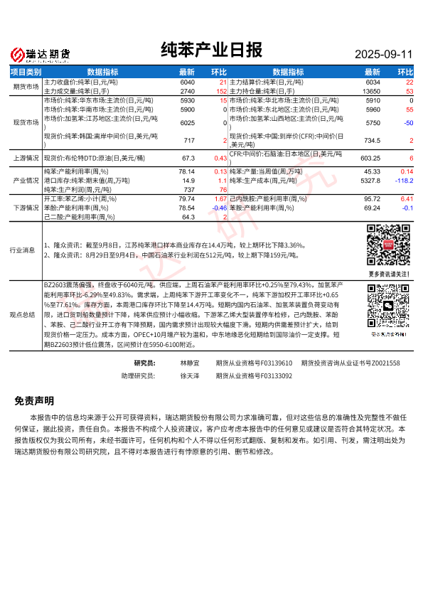 【RUIDAFUTURESCO..LTD.】【202509】纯苯产业日报-1页
