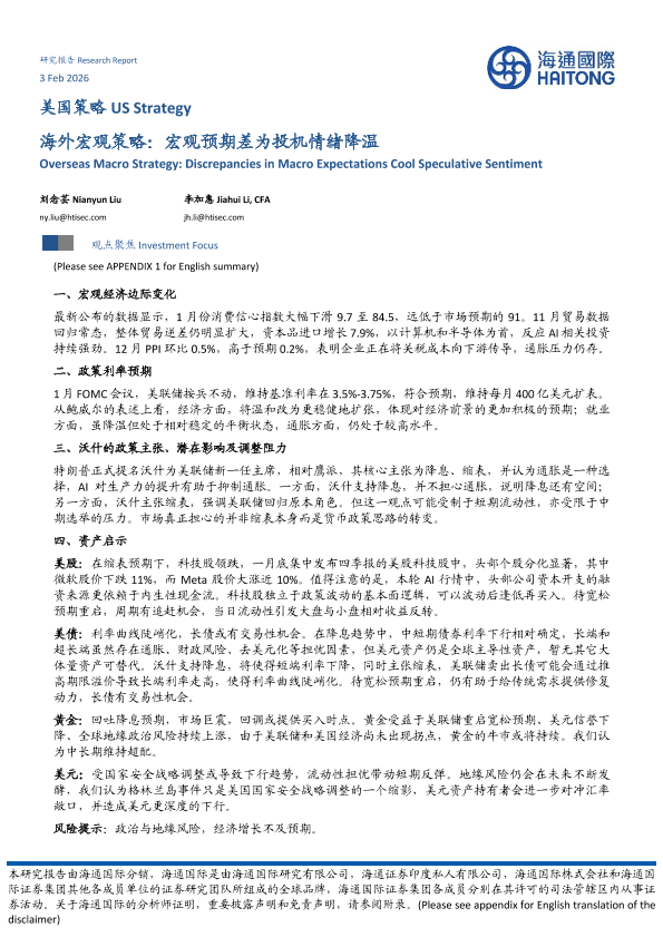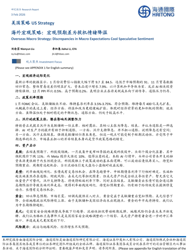 【海通国际】【202602】海外宏观策略:宏观预期差为投机情绪降温-13页