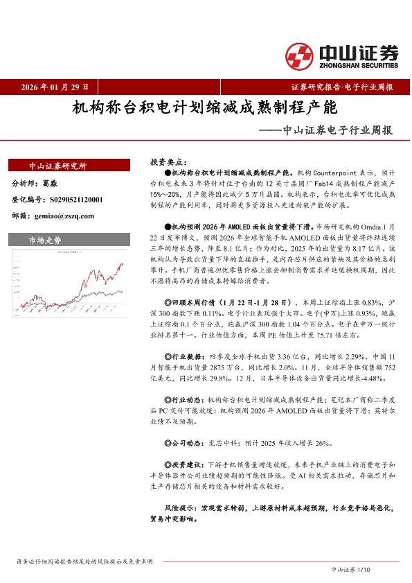 【中山证券】【202601】机构称台积电计划缩减成熟制程产能-10页