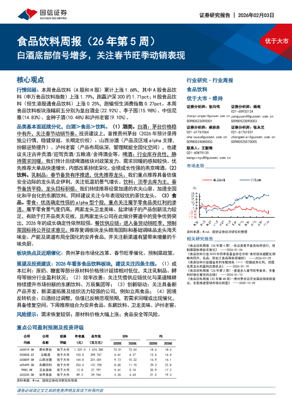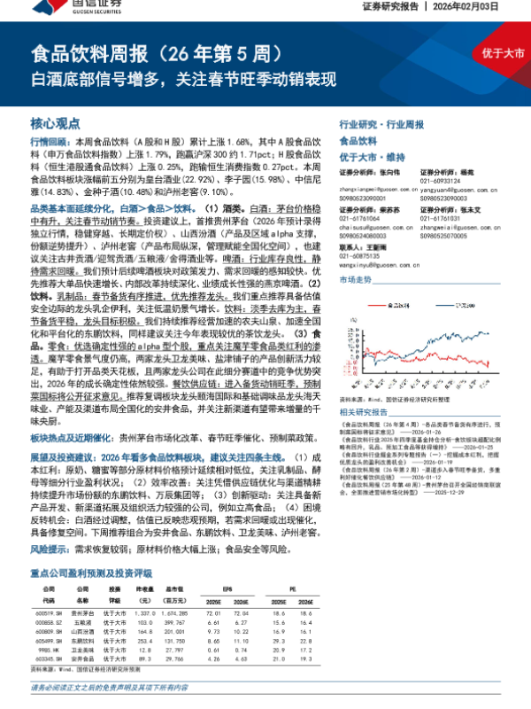 【国信证券】【202602】食品饮料周报(26年第 5周):白酒底部信号增多,关注春节旺季动销表现-15页