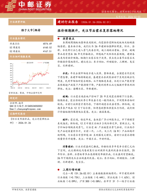 【中邮证券】【202602】建材行业周报:涨价预期提升,关注节后需求复苏落地情况-8页