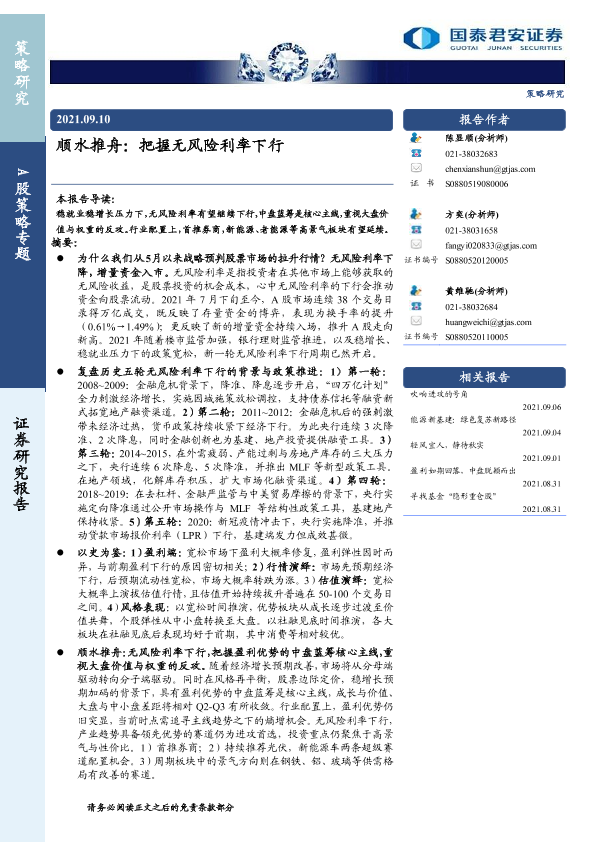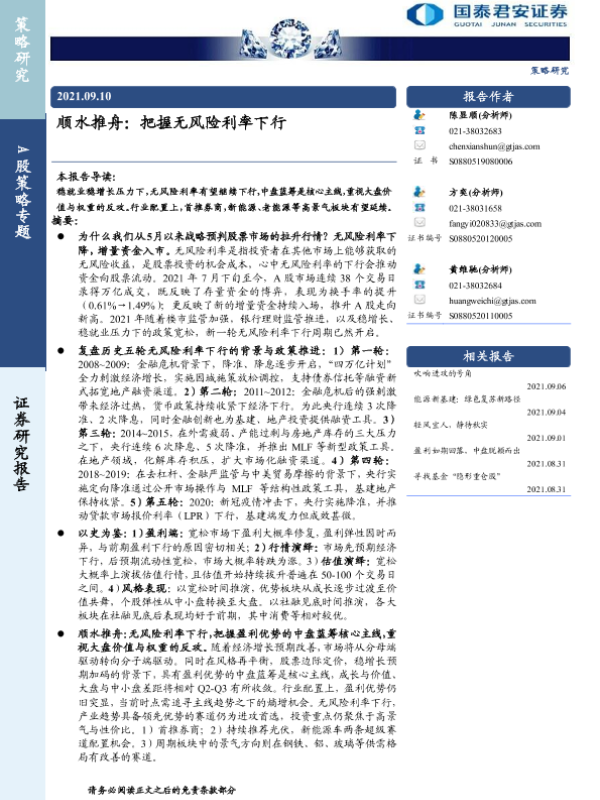 【国泰君安证券】【20210910】顺水推舟,把握无风险利率下行-19页