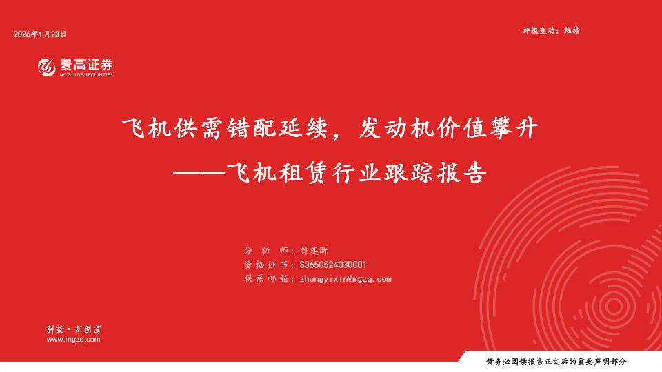 【麦高证券】【202601】飞机供需错配延续,发动机价值攀升 ——飞机租赁行业跟踪报告-24页