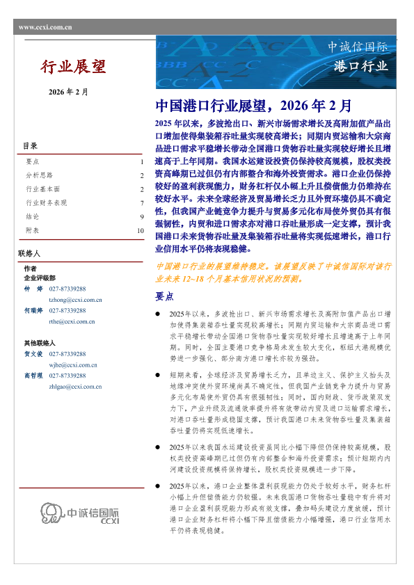 【中诚信国际】【202602】中国港口行业展望,2026年2月-14页