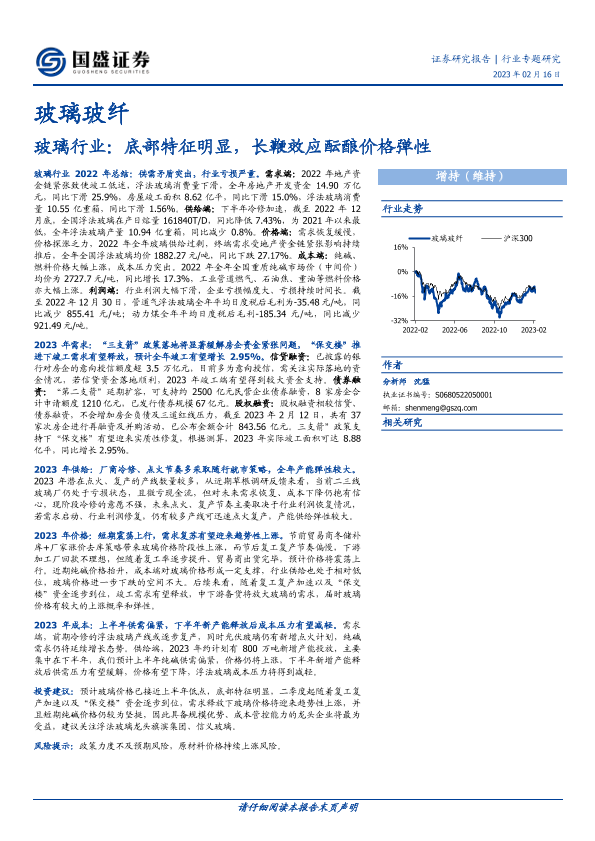 【国盛证券】【20230216】玻璃行业:底部特征明显,长鞭效应酝酿价格弹性-15页