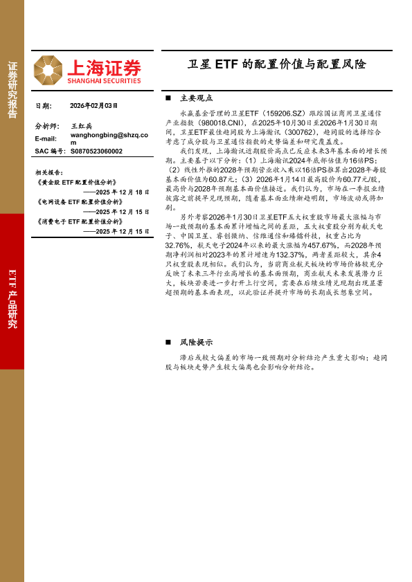 【上海证券】【202602】卫星 ETF的配置价值与配置风险-6页