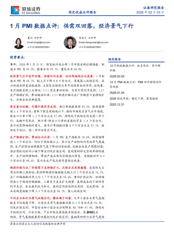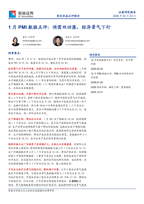 【联储证券研究院】【202602】1月 PMI数据点评:供需双回落,经济景气下行-6页