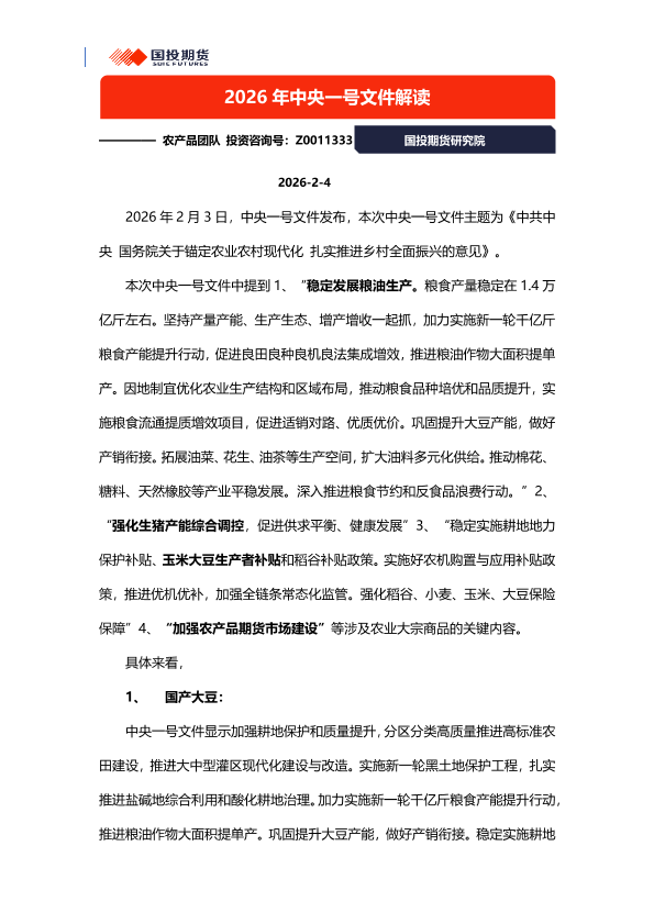 【国投期货研究院】【202602】2026年中央一号文件解读-5页