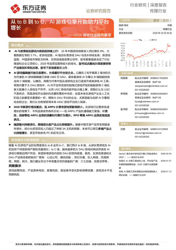 【东方证券】【202602】从to B到to C,AI游戏引擎开始助力平台增长-15页