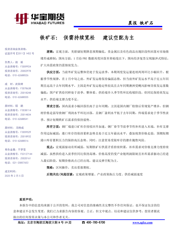 【华宝期货】【202502】铁矿石_供需持续宽松_建议空配为主-1页
