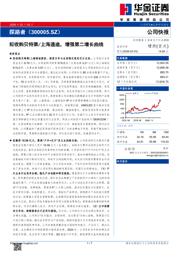 第二增长曲线 半导体行业 户外品牌 财务预测 芯片收购