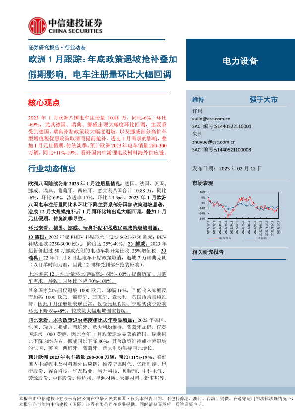 【中信建投证券】【20230212】电力设备行业欧洲1月跟踪:年底政策退坡抢补叠加假期影响,电车注册量环比大幅回调-24页
