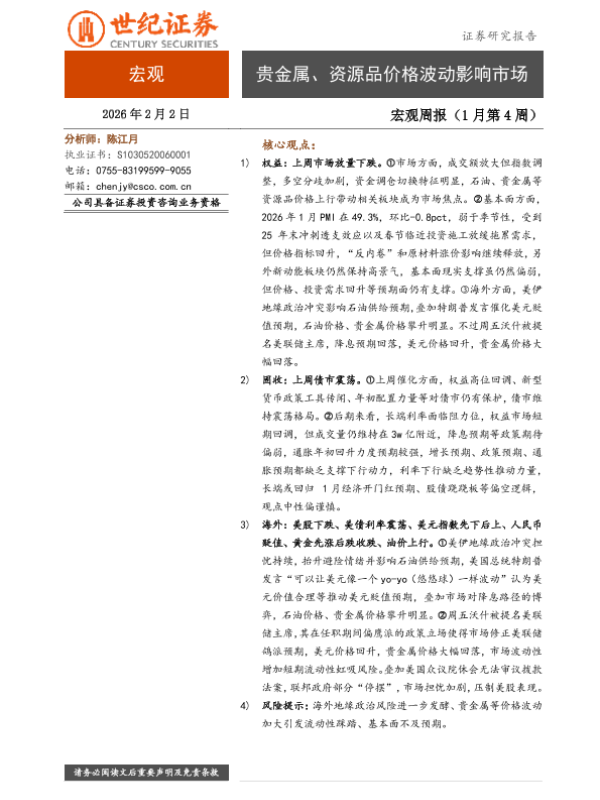 【世纪证券】【202601】2026-02-05_世纪证券_宏观周报(1月第4周):贵金属、资源品价格波动影响市场.pdf-6页