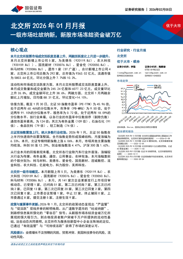 【国信证券】【202602】北交所2026年01月月报:一级市场吐故纳新,新股市场冻结资金破万亿-32页