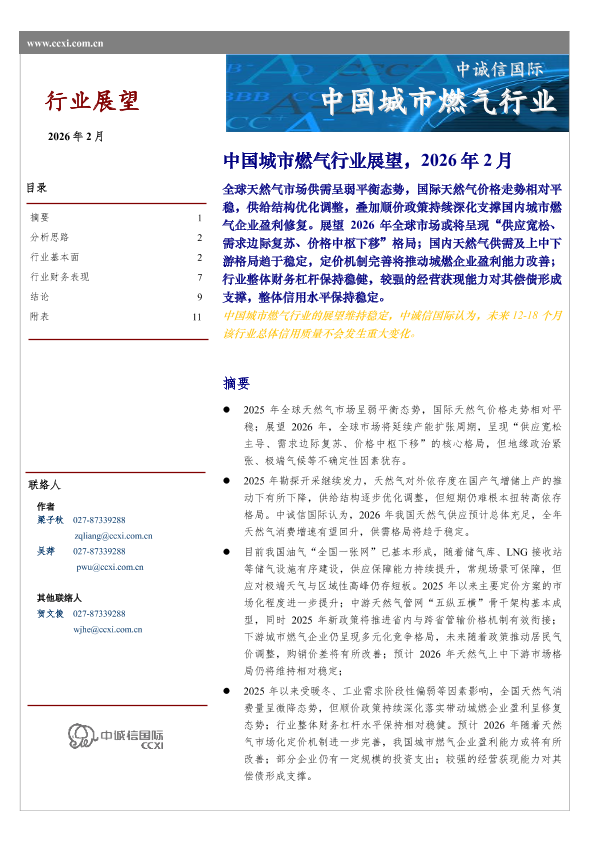 【中诚信国际CCXI】【202602】中国城市燃气行业展望,2026年2月-13页