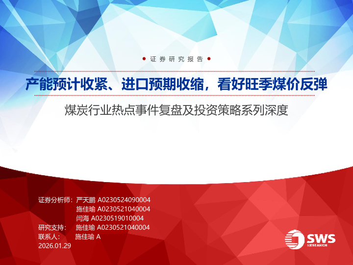 【申万宏源】【202601】煤炭行业热点事件复盘及投资策略系列深度:产能预计收紧、进口预期收缩,看好旺季煤价反弹-41页