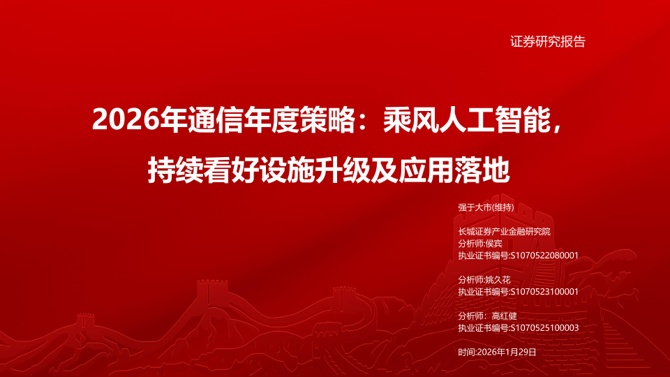 【长城证券】【202601】2026年通信年度策略:乘风人工智能,持续看好设施升级及应用落地-44页