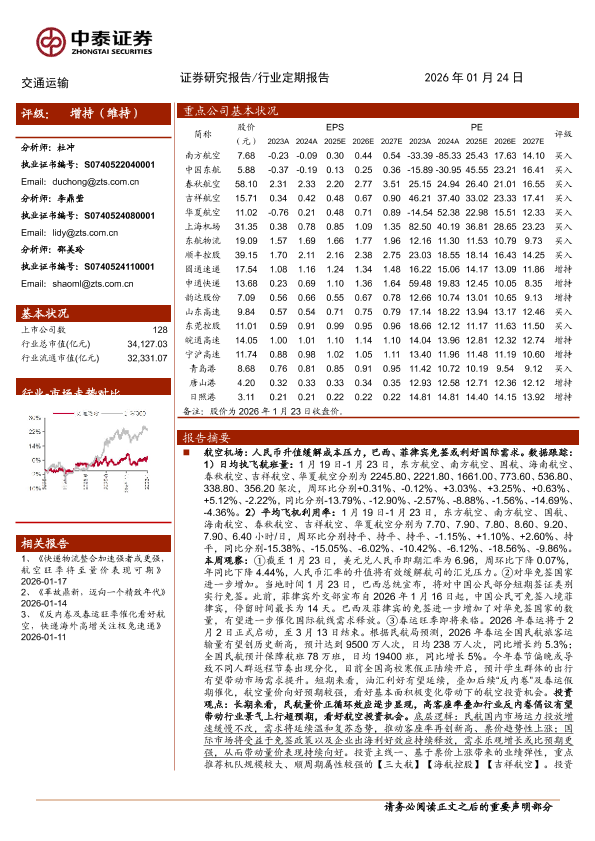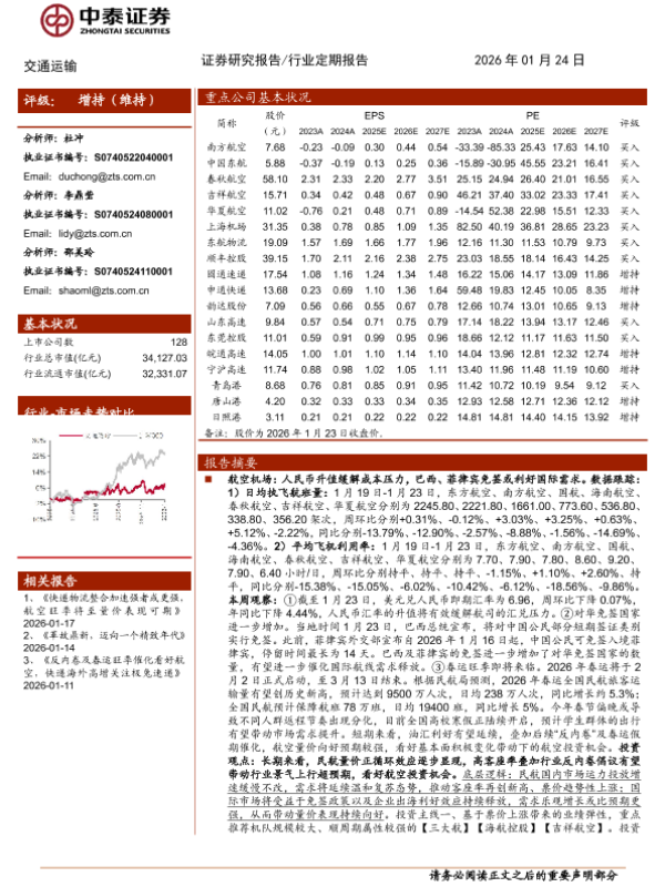 【中泰证券】【202601】交通运输行业:多因素催化航空旺季可期,持续关注油运投资机会-24页