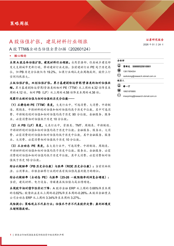 【西部证券】【202601】A股估值扩张,建筑材料行业领涨-16页