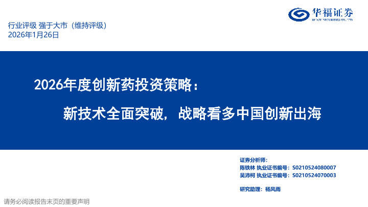 【华福证券】【202601】医药生物行业2026年度创新药投资策略:新技术全面突破,战略看多中国创新出海-85页