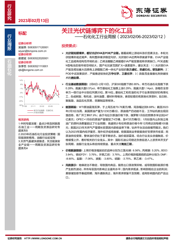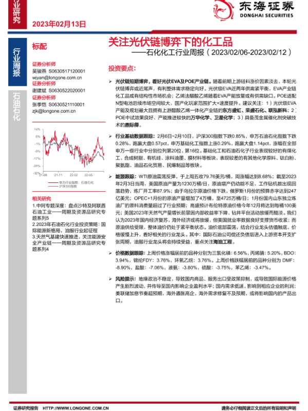 【东海证券】【20230213】石化化工行业周报:关注光伏链博弈下的化工品-27页