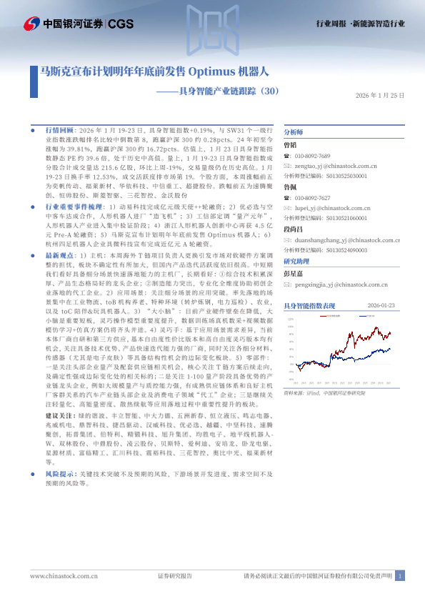 【银河证券】【202601】新能源智造行业具身智能产业链跟踪(30):马斯克宣布计划明年年底前发售Optimus机器人-11页