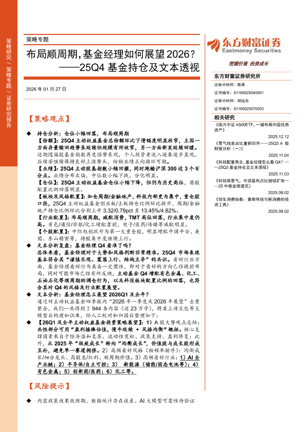 【东方财富证券】【202601】布局顺周期,基金经理如何展望 2026?——25Q4基金持仓及文本透视-15页
