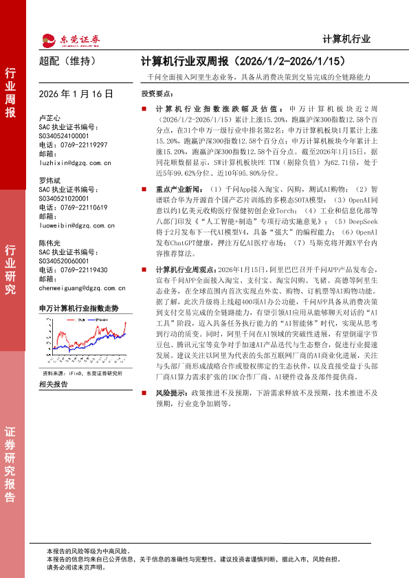 【东莞证券】【202601】计算机行业双周报:千问全面接入阿里生态业务,具备从消费决策到交易完成的全链路能力-9页