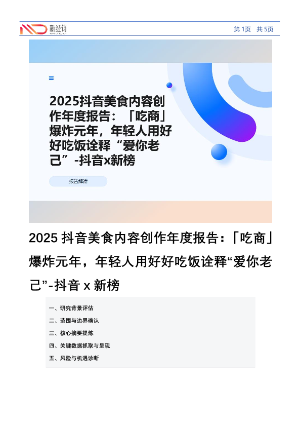 【抖音&新榜】【2026】2025抖音美食行业内容创作年度报告:「吃商」爆炸元年,年轻人用好好吃饭诠释“爱你老己”-抖音x新榜.pdf-5页