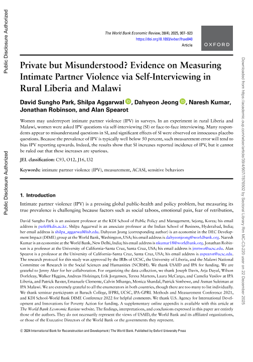 【World Bank】【2024】Private but Misunderstood? Evidence on Measuring Intimate Partner Violence via Self-Interviewing in Rural Liberia and Malawi-17页