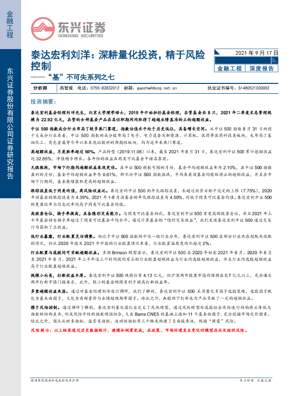 【东兴证券】【20210917】“基”不可失系列之七:泰达宏利刘洋,深耕量化投资,精于风险控制-17页